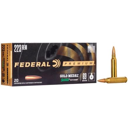 Federal Premium Gold Medal Sierra MatchKing Rifle Ammunition .223 Rem 69 gr BTHP 2950 fps - 20/ct