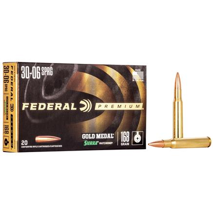 Federal Premium Gold Medal Sierra MatchKing Rifle Ammunition .30-06 Sprg 168 gr BTHP 2700 fps - 20/ct