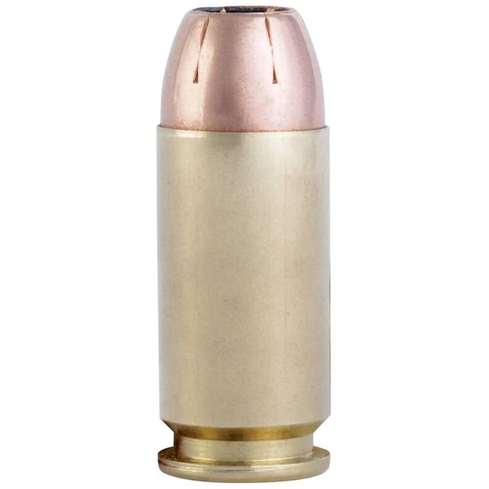 - Jacketed hollow-point bullet design provides a balanced mix of effective penetration and expansion