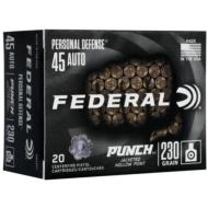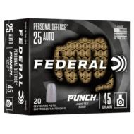 Protection now delivers a knockout blow. Punch draws from Federal Ammunition's decades of experience designing the world's finest defensive handgun loads. The bullet's skived jacket and soft lead core produce the best expansion and penetration for the price, while its nickel-plated brass and sealed primer deliver the reliable feeding and ignition you need to protect yourself.