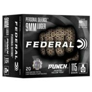 Federal Personal Defense Punch Handgun Ammunition 9mm Luger 124 gr 1150 fps JHP 20/ct