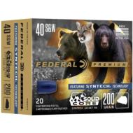 Syntech changed the range forever. Now the technology is revolutionizing protection as well. All-new Syntech Defense provides dynamic terminal performance with a hollow-point bullet that separates into three segments and a deep-penetrating core on impact. The core penetrates 12 to 18 inches through bare ballistics gel and heavy clothing—a critical benchmark in self-defense situations and the best terminal performance of any round in its class. The petals create three secondary wound channels, each more than 6 inches deep, adding to the terminal effect. Like all Syntech loads, an advanced polymer jacket eliminates lead and copper fouling and drastically reduces damaging heat and friction in the barrel. Its Federal exclusive Catalyst primer provides hot, extremely reliable ignition without the use of lead.
