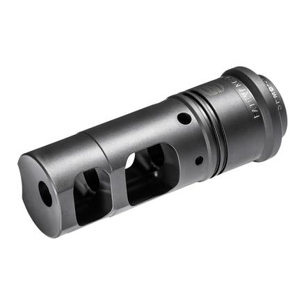 SureFire SFMB muzzle brake suppressor adapters greatly reduce both recoil impulse and muzzle rise so that your weapon tracks straight back, keeping you on target for faster shot-to-shot recovery. Surefire's proprietary Impulse Diffusion design minimizes side blast and rear-directed concussion effects. Precision machined from U.S. mill-certified heat-treated stainless steel bar stock and DLC-coated for extreme durability. Every SFMB serves as a rock-solid mounting adapter for SureFire’s combat-proven SOCOM Series Fast-Attach® suppressors. The SFMB design incorporates multiple bearing surfaces to ensure superior suppressor alignment. Blind pilot holes at the 3 o’ clock and 9 o’clock positions enable fine-tuning of recoil characteristics for individual shooting styles or ammunition characteristics. Blind pilot holes at the 6 o’clock position enable indexing the adapter at bottom dead center. All that’s required is a basic hand drill and appropriate drill bits.