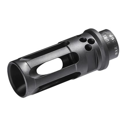 If a traditional birdcage flash hider is what you want, SureFire’s WARCOMP-556-CTN significantly reduces muzzle flash with every shot fired and helps reduce muzzle rise for easier target tracking and faster follow-up shots. Its closed tines reduce the chance you'll snag your barrel in environments where there is dense vegetation or other items that might catch an open-tine flash hider. Neutrally ported to aid in recoil management, it mimics that of a traditional birdcage flash hider while providing a rock-solid mounting option for SOCOM Series Fast-Attach® suppressors. Wrench flats machined into the sides of the adapter allow for easier installation. The WARCOMP-556-CTN delivers the performance and durability you can trust.