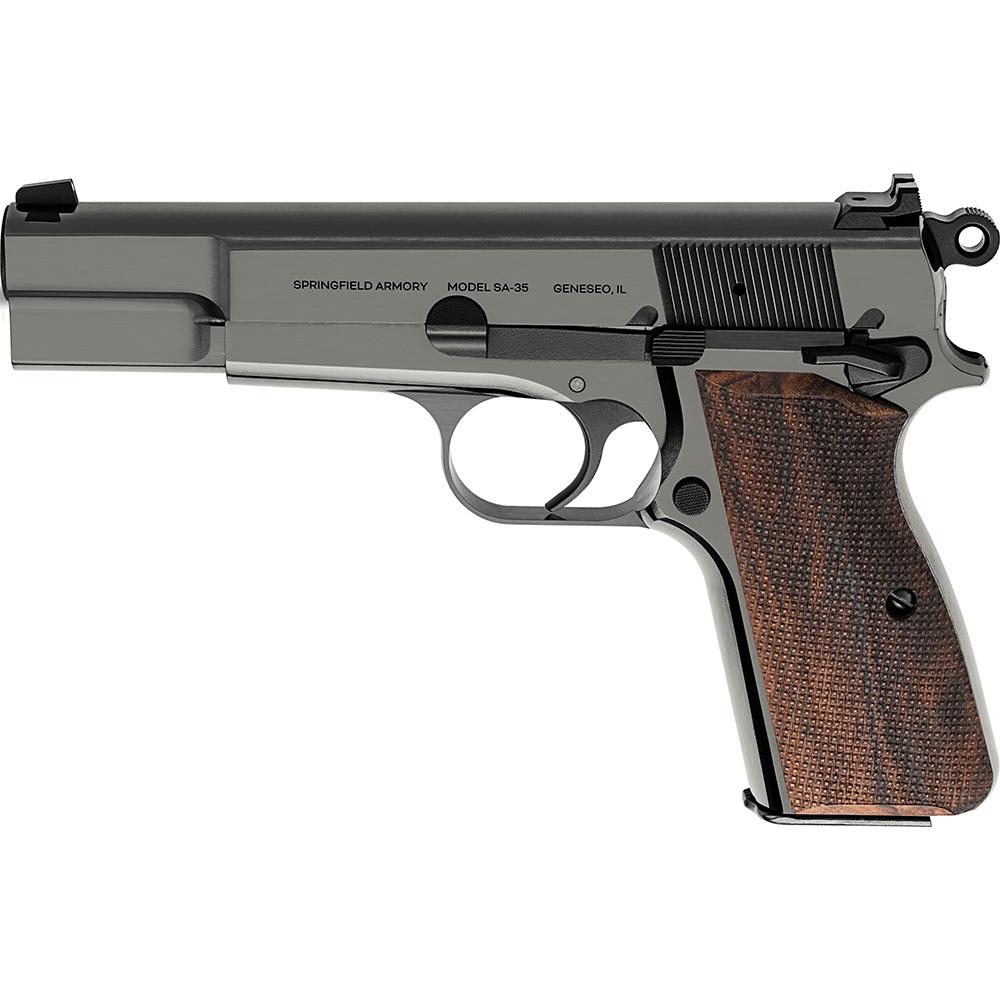 Based on one of the most prolific and popular pistols in small arms history, the Springfield Armory SA-35 gives today’s shooters a modern take on a revered classic. Featuring subtle but significant upgrades to John Moses Browning’s original P-35 design, the 9mm SA-35 captures the appeal of the “wood and steel” era of arms making, now complemented by a classic polished blued finish. Made in the U.S.A., the SA-35 features rugged forged steel parts for strength and durability, improved ergonomics and enhanced controls, a factory-tuned trigger, modern sights, an improved feed ramp design, and an increased 15-round capacity.
