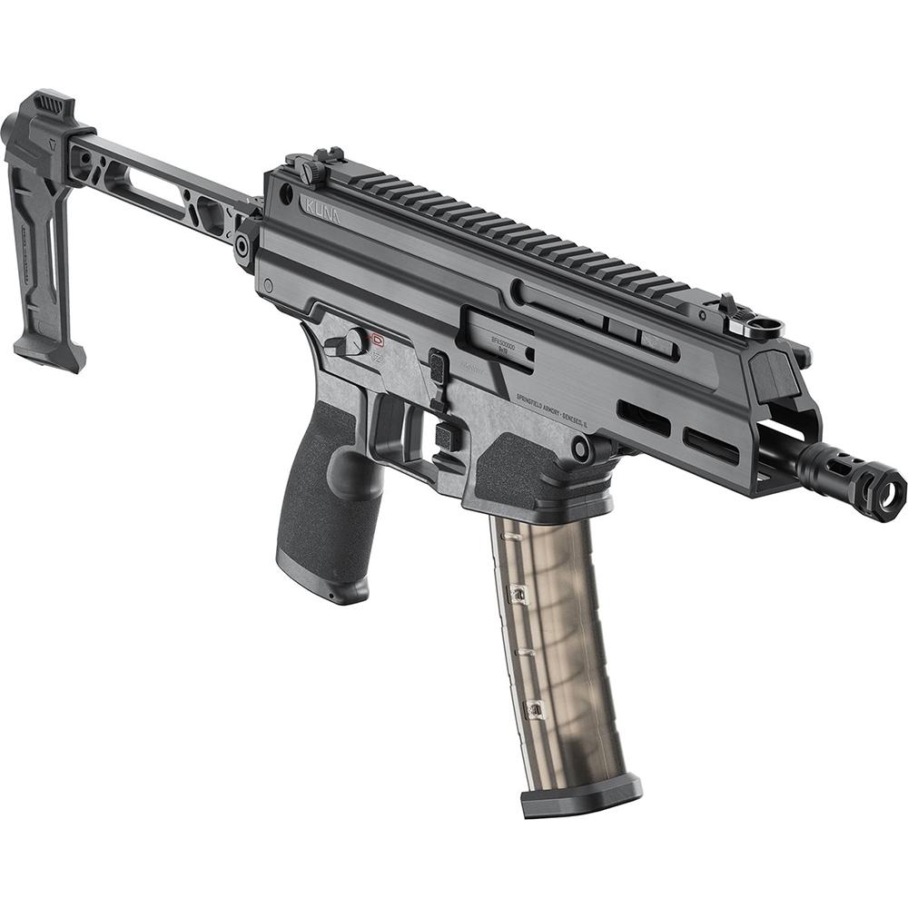 The Springfield Kuna features a integral M-LOK; ambidextrous safety switch and charging handle; AR-pattern grip with an aggressive texture, aluminum upper receiver and polymer lower receiver; Picatinny rail on receiver and receiver end plate. Includes two magazines.