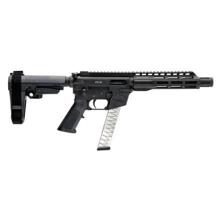 The FX-9P8S pistol (Freedom Xtreme) has a familiar set of operating controls for the avid AR-15 user, it accepts AR-15 stocks and buffer tube assemblies, as well as most free-float AR-15 rail assemblies. It features a SB Tactical SBA3 pistol brace and 7.5" M-Lok Ultra Slim rail. The FX-9P8S is machined from billet material, anodized type III aluminum components, and full hard nitride steel components including the barrel, bolt, ejector, last round hold open, feed ramp, and extractor for extended wear properties and corrosion resistance. The upper and lower receiver are more than 1" shorter than a standard AR-15, making it more compact and lighter. The FX-9p8S uses standard, double-stack Glock-style 9mm magazines.