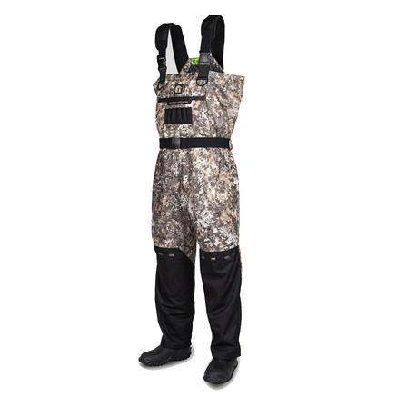 Shield Breathable Insulated Waders bring reliable comfort to the field, duck hole, or blind. Gator Waders Shield Waders feature a four (4) layer breathable polyester exterior, a 100% waterproof membrane, 1600g insulated boot with reinforced exterior rubber and aggressive tread, and quilted thermal cotton insulation to provide warmth that shields you from the elements but still breathes. Our double-stitched and dual-sealed two-layer seal taped seams combined with a reinforced rear seat and leg gaiters make the Shield Waders unmatched in protection even in the most extreme hunting environments.