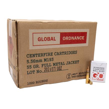 Global Ordnance M193 Rifle Ammunition 5.56mm 55gr FMJ 3162 fps 1000/ct Case (50-20/ct Boxes)