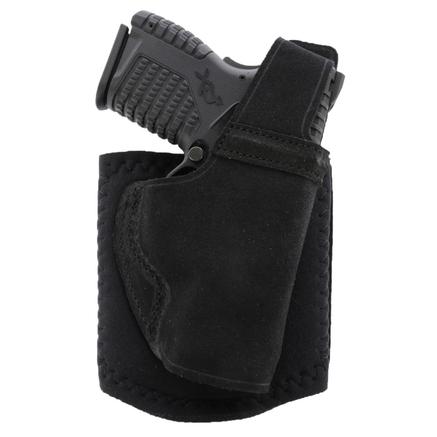 Using the same wide neoprene ankle band and Velcro closure as the Ankle Glove with Center Cut Steerhide for the holster, the Ankle Lite combines extended wearing comfort with unmatched security. Additional comfort is provided by sheepskin padding between the holster and ankle, while speed of draw is enhanced with a reinforced thumb break retention strap.