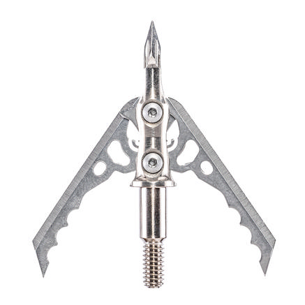 The revolutionary Rage Hypodermic NC +P utilizes cutting-edge finger-like tabs on the blades’ Slip Cam™ pivot point to “anchor” them in place while in the closed position, completely eliminating the need for a SHOCK COLLAR™, dental band or O-ring, while still providing reliable blade retention. Upon impact, the blades instantly deploy to a 1 3/4-inch cutting diameter, administering the gaping wounds that bowhunters have come to expect from the field-proven Rage Hypodermic series. The Hypodermic NC +P features the lethal Hypodermic hybrid tip with an even narrower profile and needle-like ferrule and swept-back blade design for deeper penetration. In flight, that streamlined design makes for superior field-tip accuracy. The two .035” thick blades deploy on impact, sliding into a swept-back blade angle while the 1.75” cutting diameter delivers a wide entry hole for gruesome blood trails and brief tracking jobs.