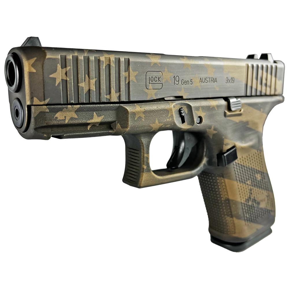 Glock 19 Gen 5 Custom "Distressed Flag Burnt Bronze" Handgun 9mm Luger 15/rd Magazines (3) 4.02" Barrel Austria