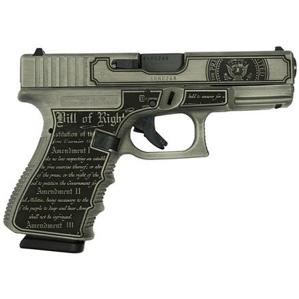 Glock 19 Gen 3 Custom "Trump 2024" Compact Handgun 9mm Luger 15rd Magazines (2) 4.02" Barrel Crushed Silver Distressed Black USA