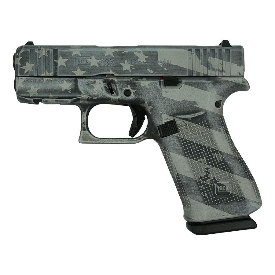 Glock 43X "US Flag" Distressed Gray Handgun 9mm Luger 10rd Magazines(2) 3.4" Barrel Accessory Rail USA Made