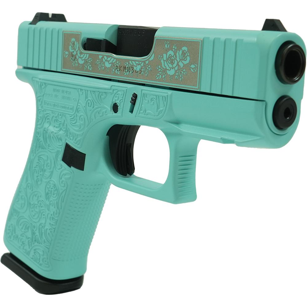 Glock 43X "Glock & Roses" Robin's Egg Blue Handgun 9mm Luger 10rd Magazines(2) 3.4" Barrel Accessory Rail USA Made