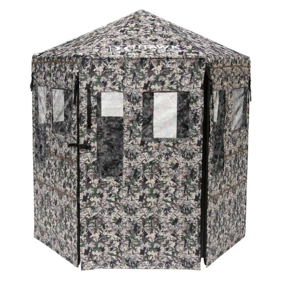 - Full 360 degree viewing/shooting opportunities with 6 archery and 6 gun windows