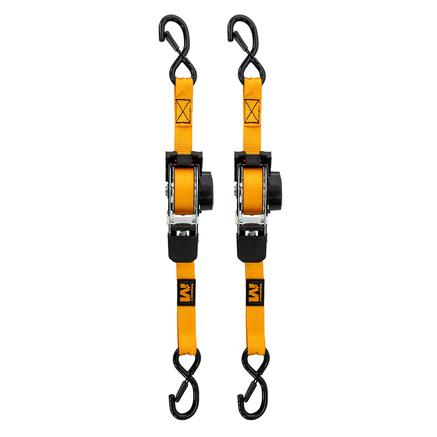 The surest and quickest way to secure any cargo, Muddy’s 1'' x 10′, Retractable Ratchet Straps not only ensure a rock-solid attachment but also eliminate all worry over twists and tangles, thanks to their instantly retractable design. With just the push of a button, the strap length retracts, keeping everything safely in line and perfectly tidy during transport. Made of super-strong polyester webbing with anodized, rust-resistant components and PVC-coated S-hooks with safety clips for added security, this pair of straps boasts a 1,322-lb. breaking strength and a whopping 430-lb. working load limit you can count on to see you through any scenario.