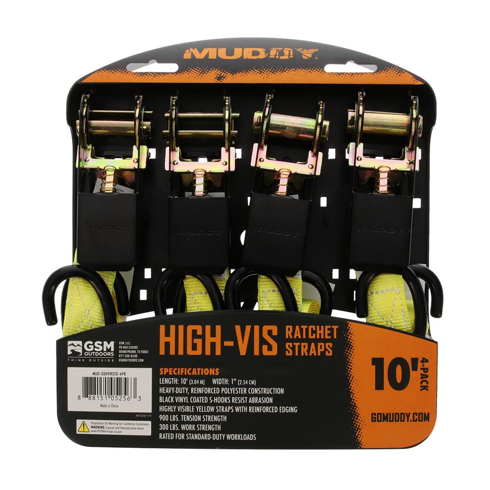 Muddy Ratchet Straps 1" x 10 ft High-Vis Yellow 4/ct