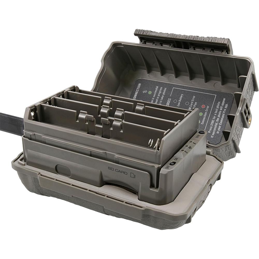 Thanks to the addition of dual-core processing, Stealth Cam’s Deceptor MAX 2.0 Dual-Core Cellular Trail Camera captures and uploads photos and videos with audio simultaneously, so you remain up-to-date every minute of every day. This pair of cameras also boasts advanced compression and integrated AI technology, including enhanced shadows and Night IQ, to ensure the images and videos you receive are stunningly crisp and clear, even after sunset. 4K HD Downloads: See every detail with increased HD download quality. Download 4K high-resolution photos and videos directly to the Command Pro app. An expanded battery capacity (for a total of 16 AA batteries each, not included) is now also paired with 16GB of internal memory for secure photo and video storage. Features two pre-installed SIM cards and our Automatic Network Coverage feature that continuously monitors both AT&T and Verizon signal strength, ensuring automatic connection to the strongest network for connectivity you can count on via the Command Pro app. On Demand Live Stream photo and video capture takes and sends crystal-clear images and streams videos in real-time, while the 36-piece, 940nm No-Glo LED array in each device offers an invisible detection and flash range out to 100 feet. A 0.3-second trigger speed captures as many as nine photos per burst.