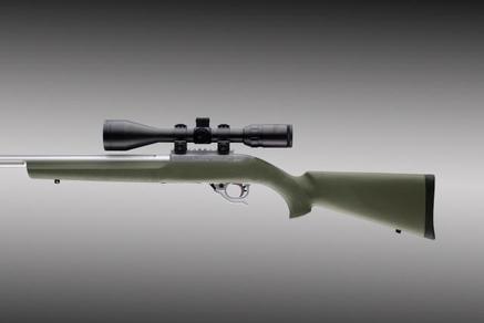 Hogue's revolutionary O.M.™ series stocks are made similar to the popular rubber grips. Constructed by molding a super strong, rigid fiberglass reinforced stock that precisely fits the rifle action. Then the stock is OverMolded with the same rubber as on Hogue grips that results in a comfortable, non slip, super smooth attractive finish. These stocks feature a sleek straight comb, palm swells and a "varminter" style forend which is treated with a unique "Cobblestone" texture. All centerfire rifle stocks are equipped with a recoil pad. All centerfire bolt action models come standard with aluminum pillar bedding in the stock.