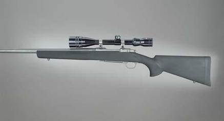 Hogue's revolutionary O.M.™ series stocks are made similar to the popular rubber grips. Constructed by molding a super strong, rigid fiberglass reinforced stock that precisely fits the rifle action. Then the stock is OverMolded with the same rubber as on Hogue grips that results in a comfortable, non slip, super smooth attractive finish. These stocks feature a sleek straight comb, palm swells and a "varminter" style forend which is treated with a unique "Cobblestone" texture. All centerfire rifle stocks are equipped with a recoil pad. All centerfire bolt action models come standard with aluminum pillar bedding in the stock.