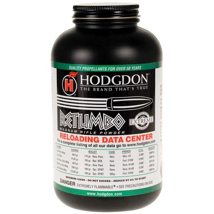 Hodgdon Extreme Retumbo Rifle Powder is designed specifically for extremely large over-bored cartridges, including .300 Remington Ultra Magnum, 7mm Remington Ultra Magnum, and .30-378 Weatherby Magnum, among others. This powder is capable of adding between 40 and 100 feet per second, creating greater velocities compared to other magnum powders of the same type.