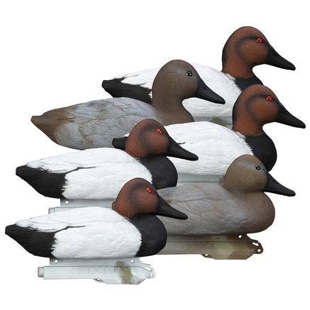 Higdon Outdoors is bringing the high visibility of the Canvasback to the standard line! These are a great addition to any spread and deliver ultimate space saving without sacrificing visibility and contrast to diver hunters. Higdon's legendary Foam filling was a must when making this line! Never worry about shooting your diver decoys again! Higdon Outdoors set the standard for foam filled waterfowl decoys, and these are sure to perform season after season. Multiple extra-wide body postures and head positions add visibility and life to your setup. Standard size decoys are slightly undersized from an average live duck, and are perfect for hunters looking for lightweight, packable, affordable decoys. Use them on their own, to pack in to your favorite public spot, or to add numbers and variety to any spread. Self-righting, forward-weighted keel for quick and easy set-up in any water depth. Higdon's innovative keel clip allows simple short stringing in shallow water. Higdon's highly detailed, proprietary UV painting process and deep realistic carving techniques highlight each individual feather and minimize unnatural glare, even when decoys are wet. Our paint won't peel or fade, so your decoys will look great season after season. Package includes: 2 Upright Drakes, 2 Resting Drakes and 2 Resting Hens. As a Ducks Unlimited Official Licensed Product, a percentage of your purchase will go toward wetland conservation.