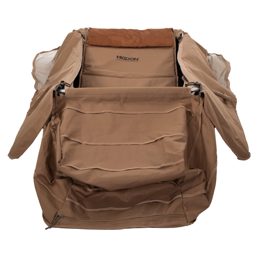 Setting up and taking down the Quickdraw is a breeze, thanks to its simple one-fold design that streamlines the entire process. Additionally, interior shell pockets offer organized storage for shells and essential gear, ensuring that hunters have everything they need within arm's reach. The Higdon Outdoors Quickdraw Layout Blind is more than just a hunting accessory; it's a partner in the pursuit of waterfowl, providing unmatched convenience and effectiveness in the field. Elevate your hunting experience with the Quickdraw and redefine what's possible in field waterfowl blinds.