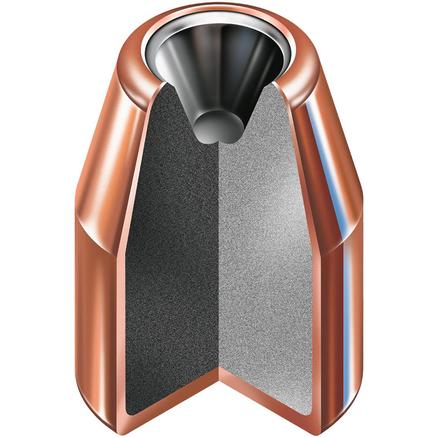 The HAP bullet is not designed with a cannelure and folds to help with expansion and increase terminal performance, but it does have a special pure lead core within a copper jacket design that prevents gun jams and protects the nose for seamless feeding.