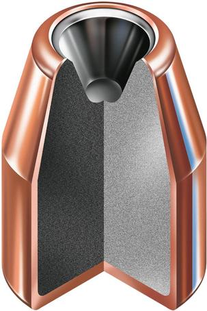 The HAP bullet is not designed with a cannelure and folds to help with expansion and increase terminal performance, but it does have a special pure lead core within a copper jacket design that prevents gun jams and protects the nose for seamless feeding.
