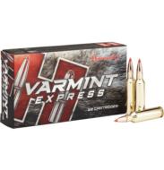 Hornady Varmint Express ammunition is designed around the hard-hitting performance of our famous V-MAX bullet. Polymer tipped V-MAX bullets deliver match accuracy, high ballistic coefficients, wind defying trajectories, and rapid fragmentation upon contact. Each Varmint Express offering is loaded with high quality cases and carefully selected propellant and primers that are chosen to provide the best performance in each individual load.