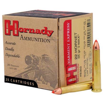 Hornady Varmint Express Rifle Ammunition .22 Hornet 35 gr V-MAX 3100 fps 25/ct