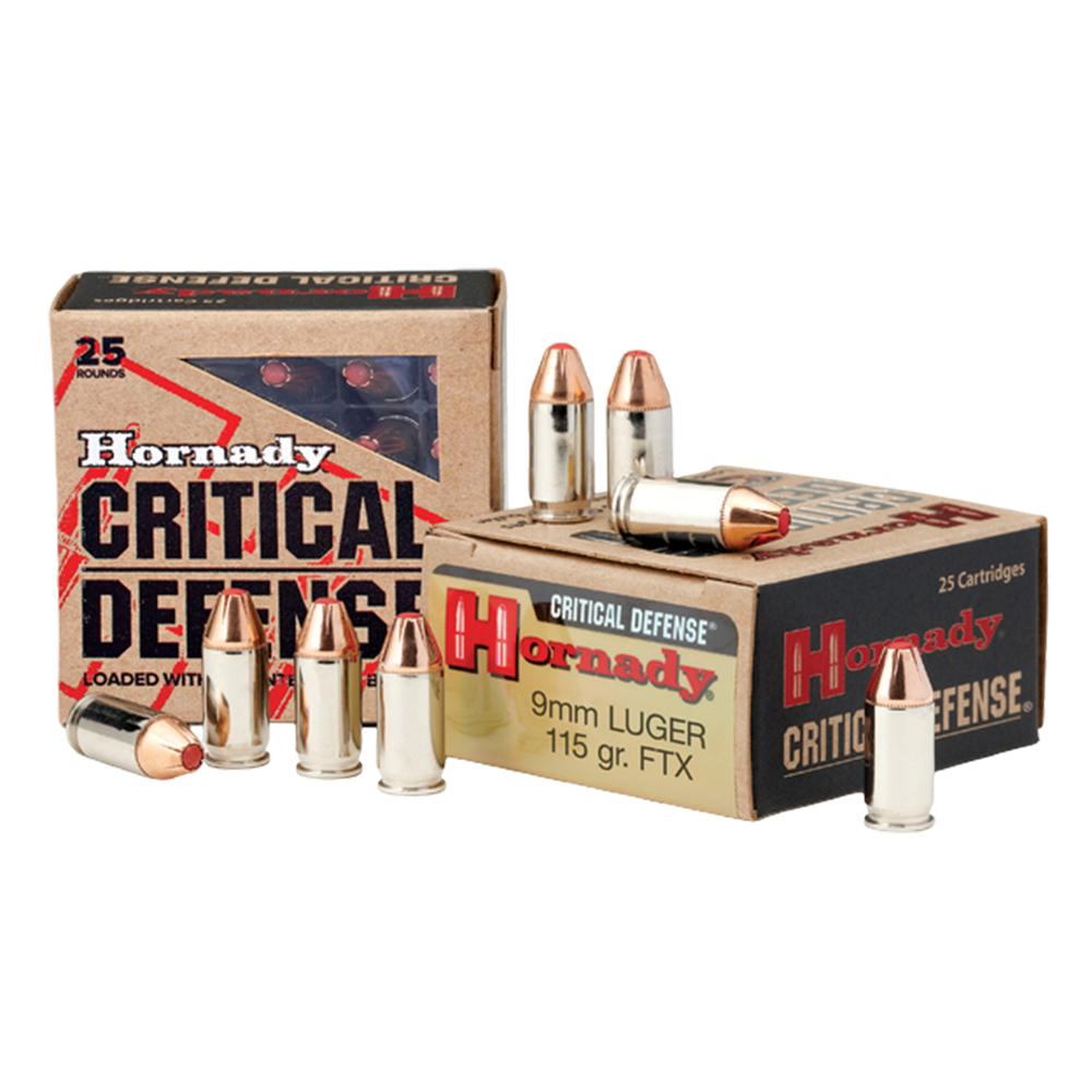 Hornady Critical Defense FTX Handgun Ammunition 9mm Luger 115gr PT 1140 fps 250/ct Case (10-25/ct Boxes)