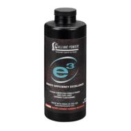 Alliant Powder's new e3 represents the next generation of reloading powder technology, and offers the clay target shooter what he/she needs to maintain the winning edge. This 12 ga powder possesses a perfect balance of the qualities desired by competitive shooters. e3 features reduced charge weights, is the cleanest burning 12 ga. shotshell powder available, and has environmental stability and ultra premium quality to provide more consistent and reproducible performance all-year round. It is destined to become the shot shell powder by which all others are judged, and like all of Alliant's flake powders, it is proudly made in the USA. Named after its core qualities of energy, efficiency and excellence, this exciting new powder offers 12-gauge target shooters a high-performance product that stands apart from the rest.