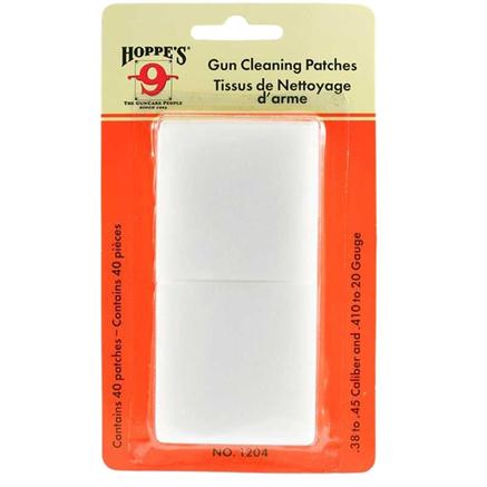 Hoppe's Gun Cleaning Patches are ultra-absorbent, uniformly pre-cut, and effectively clean firearms. The synthetic patches are available in smaller count packs in five different sizes. Our cotton patches are available in four different sizes, come in bulk quantities, and are packaged in a resealable bag for easy storage. Hoppe's Cleaning Patches can be used with cleaners and oils to ensure a thorough clean of any firearm.