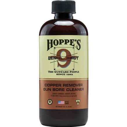 Formulated especially for bench rest shooters, Hoppe's Bench Rest 9® is the standard by which all copper solvents are judged. Bench Rest 9 makes it possible for bench rest shooters and serious hunters to clean their bores of copper fouling overnight...instead of three or four days. Bench Rest 9 is powerful, safe and fast, and contains no abrasives. And although the solvent is essentially a coper-buster, it's also great for removing powder, lead and plastic foulings from all rifles, shotguns, pistols and revolvers.