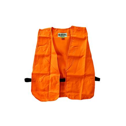 Be safe and be seen! The Blaze Orange Safety Vest provides more than 700 square inches of safety orange to help hunters stay visible. It features non-restricting elastic side straps and an adjustable front closure. Made of a quiet fabric that is machine washable, one size fits most.