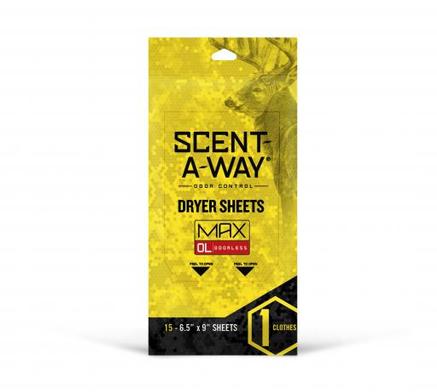 Prevent static cling in your hunting clothes without the scent of typical dryer sheets. Scent-A-Way MAX Odorless Dryer Sheets work on all fabrics and leave no residue in the dryer. The re-sealable pack includes 15 6.5” x 9” sheets.