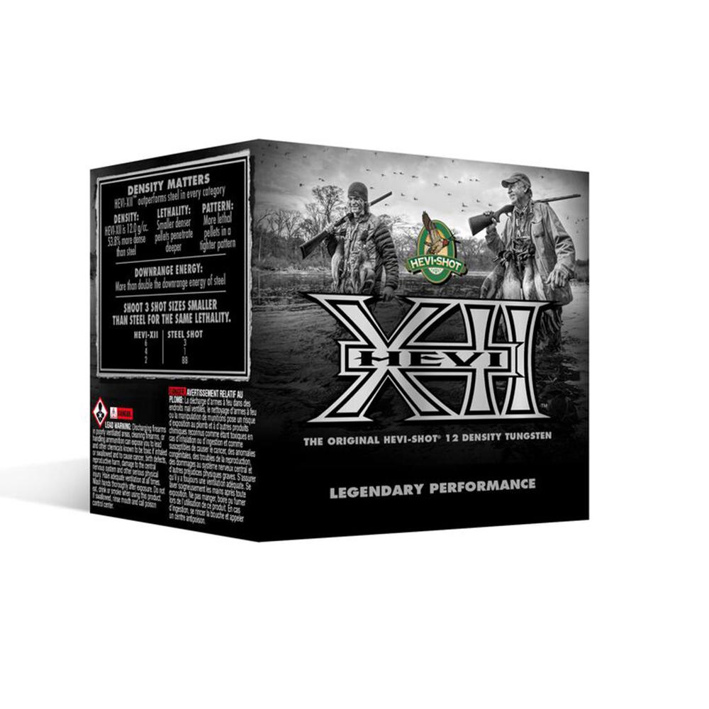 Pack in with HEVI-XII® and come out carrying extra weight. Loaded with HEVI-Shot's original 12 g/cc tungsten that's 53.8 percent denser than steel, these loads double the downrange energy, hitting birds harder from a longer distance. This means you can drop three shot sizes for the same lethality and still put 28 percent more pellets on target.