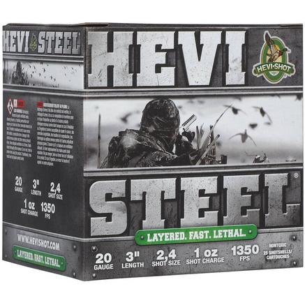 HEVI-Shot HEVI-Steel Layered Shotshells 20ga 3" 1-3/8oz 1350 fps #2,4 25/ct