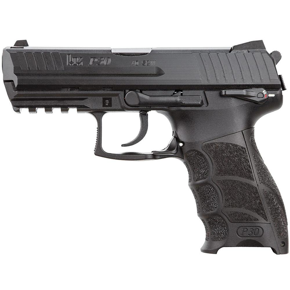 HK HK's P30S features an ambidextrous safety lever mounted on both sides of the corrosion-proof fiber-reinforced polymer frame a Picatinny rail and the patented HK recoil reduction system. The extractor doubles as a loaded chamber indicator providing a tactile and visual reminder of a loaded chamber. Variant 3 has a DA/SA trigger with an ambidextrous safety/decocking button. This 40 S&W model comes with two (2) 10-round magazines.