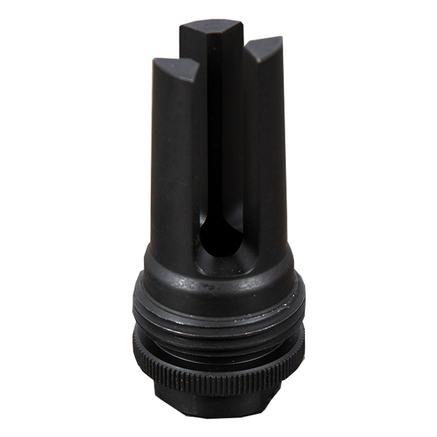 The ASR Flash Hider is compatible with SilencerCo's ASR (Active Spring Retention) Mounts. The ASR (Active Spring Retention) Mount is a quick attach / detach system for almost all SilencerCo suppressors. The simple one-hand-on, one-hand-off mounting system is compatible with all ASR Muzzle Devices to promote ease of transfer from one silencer to another. Once shouldered, the locking ring ensures the silencer won’t rotate or work itself loose under a heavy firing schedule. The patent-pending resonance suppression effectively eliminates the tuning-fork effect common with competing 3-prong Flash Hiders.