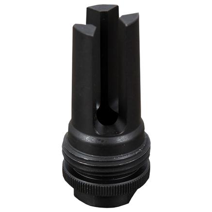 The ASR Flash Hider is compatible with SilencerCo's ASR (Active Spring Retention) Mounts. The ASR (Active Spring Retention) Mount is a quick attach / detach system for almost all SilencerCo suppressors. The simple one-hand-on, one-hand-off mounting system is compatible with all ASR Muzzle Devices to promote ease of transfer from one silencer to another. Once shouldered, the locking ring ensures the silencer won’t rotate or work itself loose under a heavy firing schedule. The patent-pending resonance suppression effectively eliminates the tuning-fork effect common with competing 3-prong Flash Hiders.