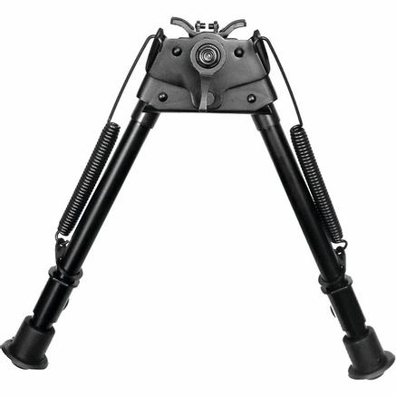 SPORT RIDGE® Heavy Duty Bi-pods connect to standard swivel studs, fully adjustable legs lock in the extended position quickly. Micro adjustments are made by utilizing the tension wheels, allowing the shooter to shoot at any height. Heavy-Duty springs ensure fast and robust deployment of the legs both in the forward storage position or extended for steady, precise shooting. These pivoting models allow the canting of the rifle to adjust for uneven terrain. The large pivoting lever provides good control and ergonomic access for when wearing gloves.