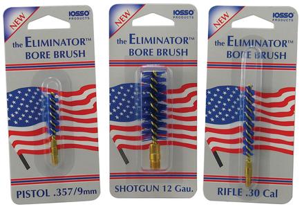 Premium Iosso Eliminator bore brushes are made with a fiber that is cobalt blue in color so it can't be mistaken for any other type brush. This thicker, stiffer grade of fiber allows for back and forth action unlike traditional brass and bronze type brushes. They may be used several times before becoming worn. This brush is wound tighter and has more fiber per inch than any other brush. Use with the Iosso Bore Cleaner and Triple Action Solution to remove all fouling; copper, lead, plastic wad, and carbon burn. It drastically reduces cleaning time and the result is an unbelievably clean bore. These brushes are available in rifle, pistol, shotgun and black powder sizes. The blue brushes are a Trademark of Iosso Products.