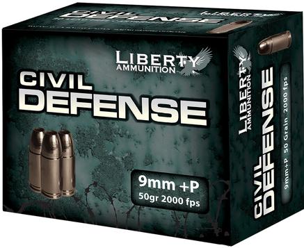 Liberty Civil Defense Handgun Ammunition 9mm (+P) 50gr SCHP 2000 fps 20/ct