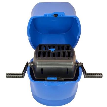 Berry's Rotary Media Separator provides an easy way to separate your tumbled brass from media in one clean operation. Just empty your tumbler into the basket, close it and the clam-shell lid, give the handles a turn, and within seconds your brass is sorted from your media! The outer clam-shell lid snaps shut to keep the media and dust inside. No need for a bucket. A whole tumbler full of media can fit in the separator. It carries a lifetime warranty and is made in the USA.