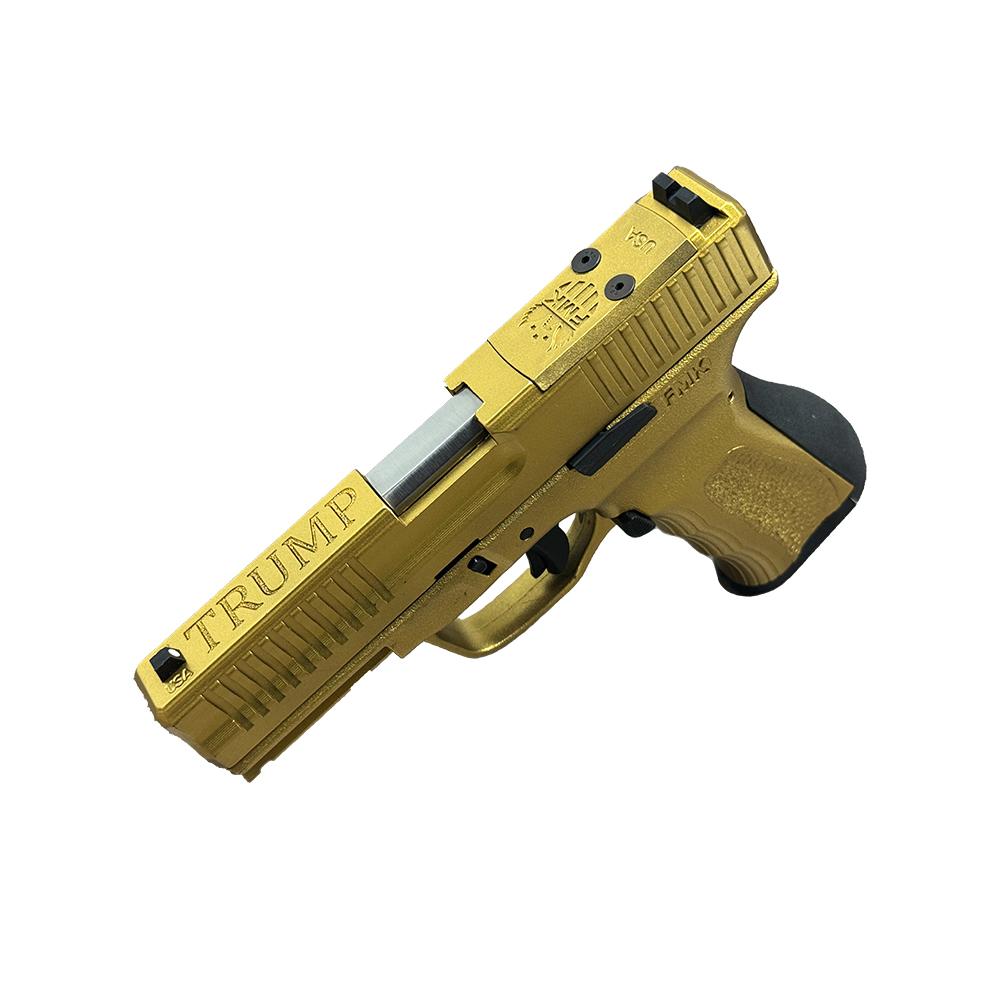 FMK G3 Trump Signature Handgun 9mm Luger 14rd Magazines(2) 3.87" Barrel Optic Ready Gold and silver Cerakote