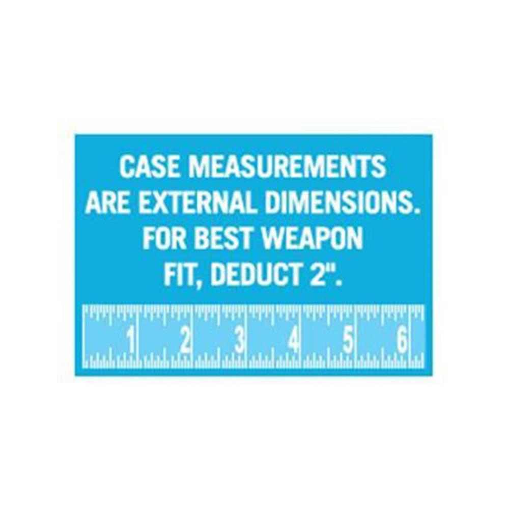 Case measurements are external dimensions. For best weapon fit, deduct 2".