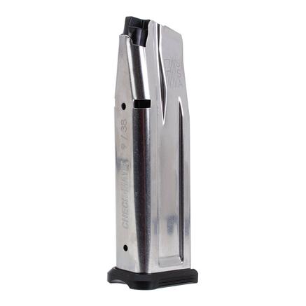 Check-Mate 2011 126mm 19 Round 9mm Magazine. Manufactured from durable steel, this 126mm magazine is designed by Check-Mate Industries for 2011 pistol platforms chambered in 9mm. This magazine features a stainless finish and boasts a capacity of 19 rounds of 9mm cartridges. Each Check-Mate magazine is 100% developed and manufactured in the U.S.A., to ensure superior performance, reliability, quality, fit, and finish with your favorite firearm.